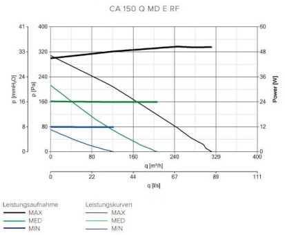 - Luftleistung: Der CA 150 Q MD E RF bietet eine höhere Luftleistung im Vergleich zu den kleineren Varianten.