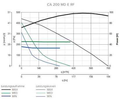 - Nennweite: Der CA 200 MD E RF hat eine Nennweite von 200 mm, während andere Varianten wie der CA 100 MD E RF eine Nennweite von 100 mm haben.