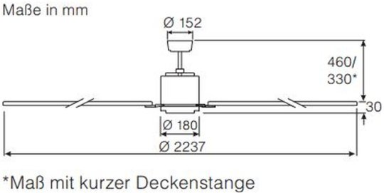 - Spannweite: Alle Modelle haben einen Durchmesser von 224 cm, ideal für große Räume bis zu 54 m².
