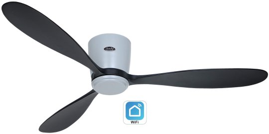 Der Deckenventilator "Eco Plano Wood Lichtgrau, Schwarz mit WLAN" ist sehr leise