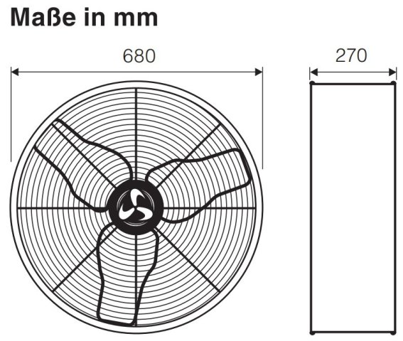 Das Flügelrad aus Aluminium mit einem Durchmesser von 68 cm bietet eine Wurfweite von bis zu 16 Metern und sorgt für eine gleichmäßige Luftverteilung. Die zwei einstellbaren Geschwindigkeitsstufen ermöglichen eine flexible Anpassung an die jeweiligen Anforderungen. Das Kabel mit einer Länge von 2,5 Metern ist für den professionellen Gebrauch ausgelegt und garantiert eine sichere Installation.