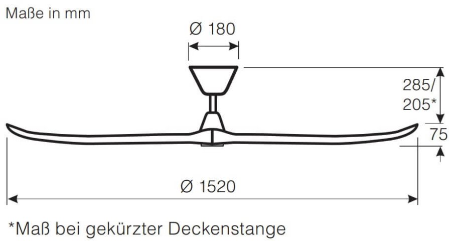 Abstand Decke - Flügel: | 285 mm / 190 mm bei gekürzter Deckenstange |