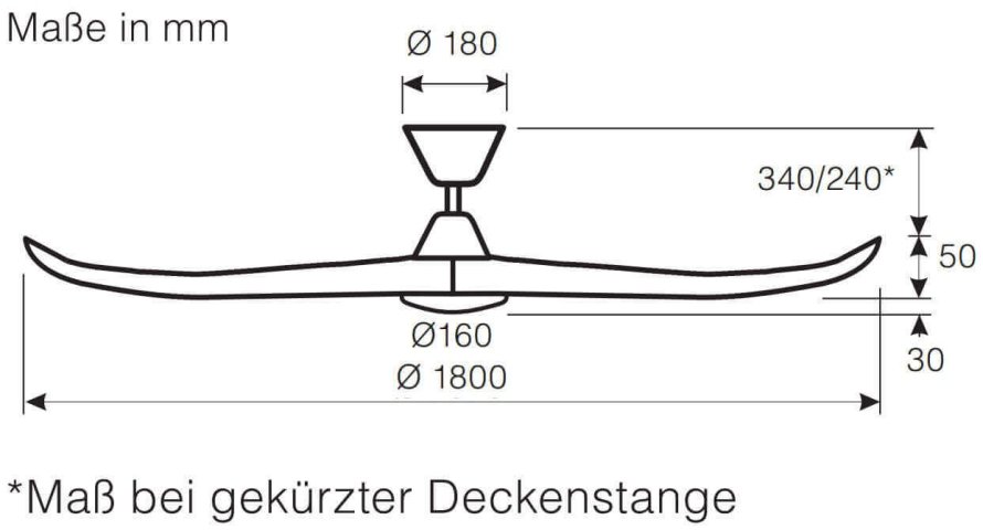 | Abstand Decke - Flügel: | 285 mm / 190 mm bei gekürzter Deckenstange |