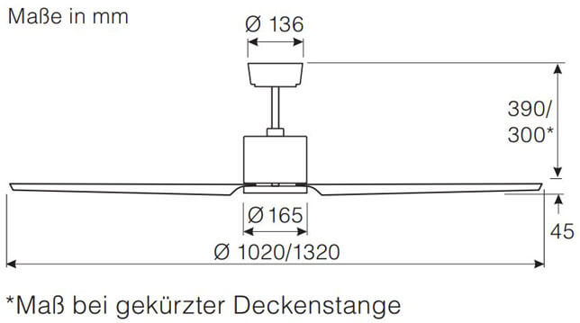 Gesteuert wird der Ventilator bequem per mitgelieferter Funkfernbedienung, über die sich 6 Geschwindigkeitsstufen, Vor- und Rücklauf, Schlaftimer, Lichtdimmung sowie eine Zeitlupenstufe einstellen lassen. Dank integrierter WiFi-Funktion lässt sich der Ventilator zudem per Smartphone-App oder Sprachassistent bedienen – für maximalen Komfort im Alltag.