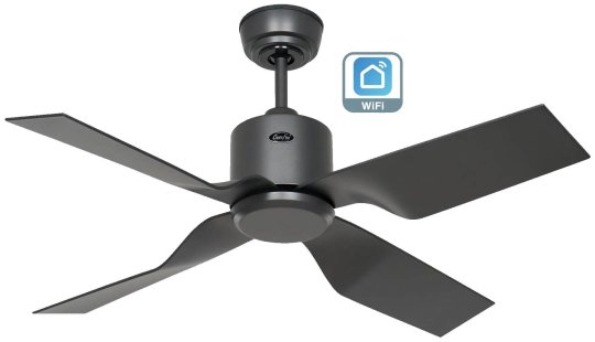 Das Gehäuse und die Flügel in basaltgrau fügen sich harmonisch in verschiedenste Raumkonzepte ein. Der langlebige und flüsterleise DC/EC-Motor sorgt für eine effiziente Luftzirkulation bei minimalem Stromverbrauch – von nur 1,2 bis 26 Watt.