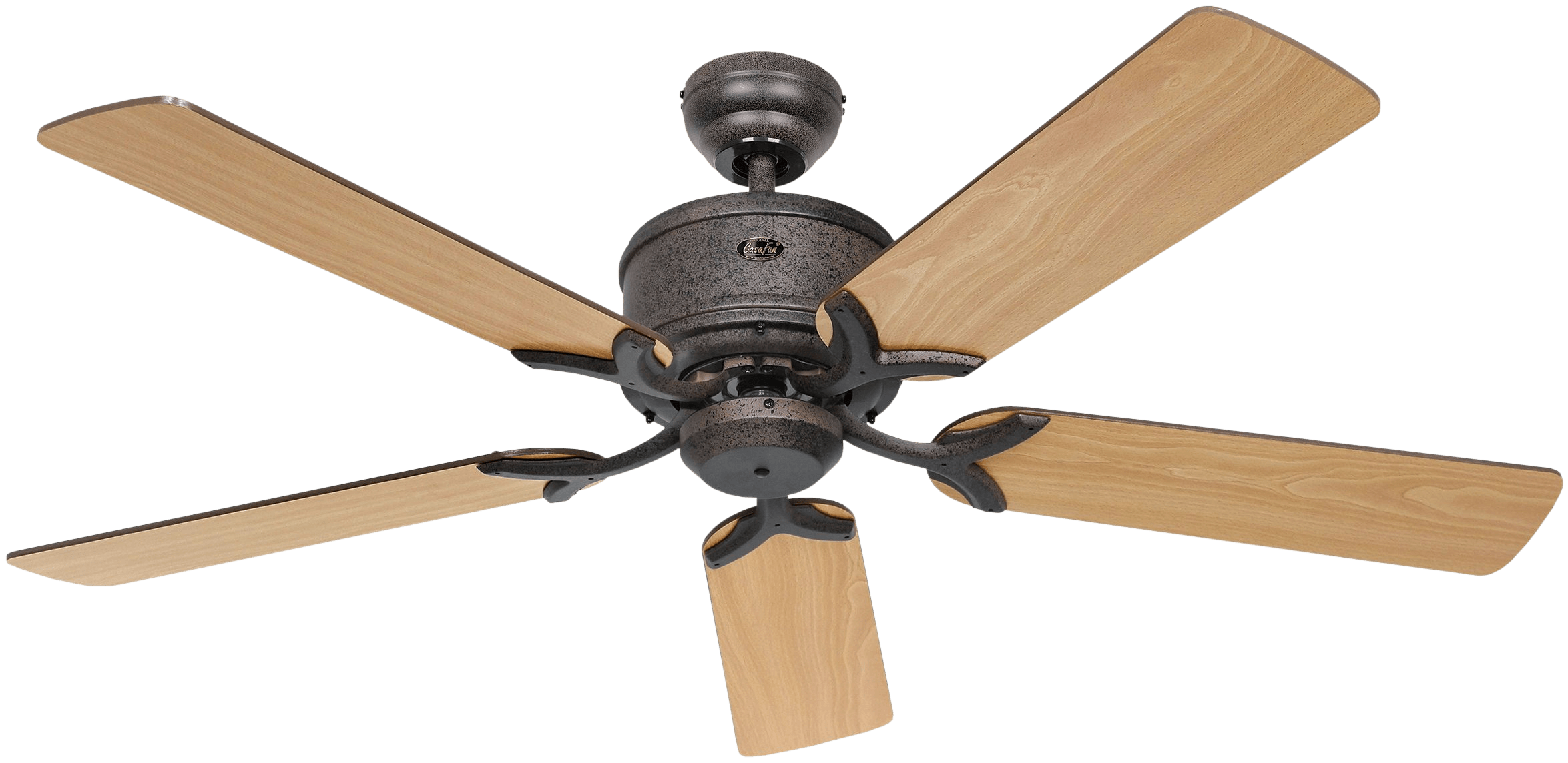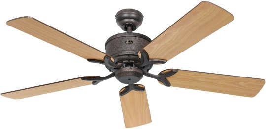 DesignCeiling fan with an elegant, classic design. Housing galvanized and clear-coated (metal finish) or with a two-layer varnish (varnish finish). Five multi-layer reversible wooden blades with a diameter of 132 mm are included, varnished or coated with a decorative finish and sealed to protect against moisture penetration.