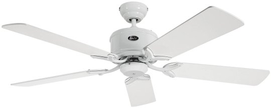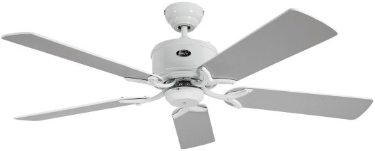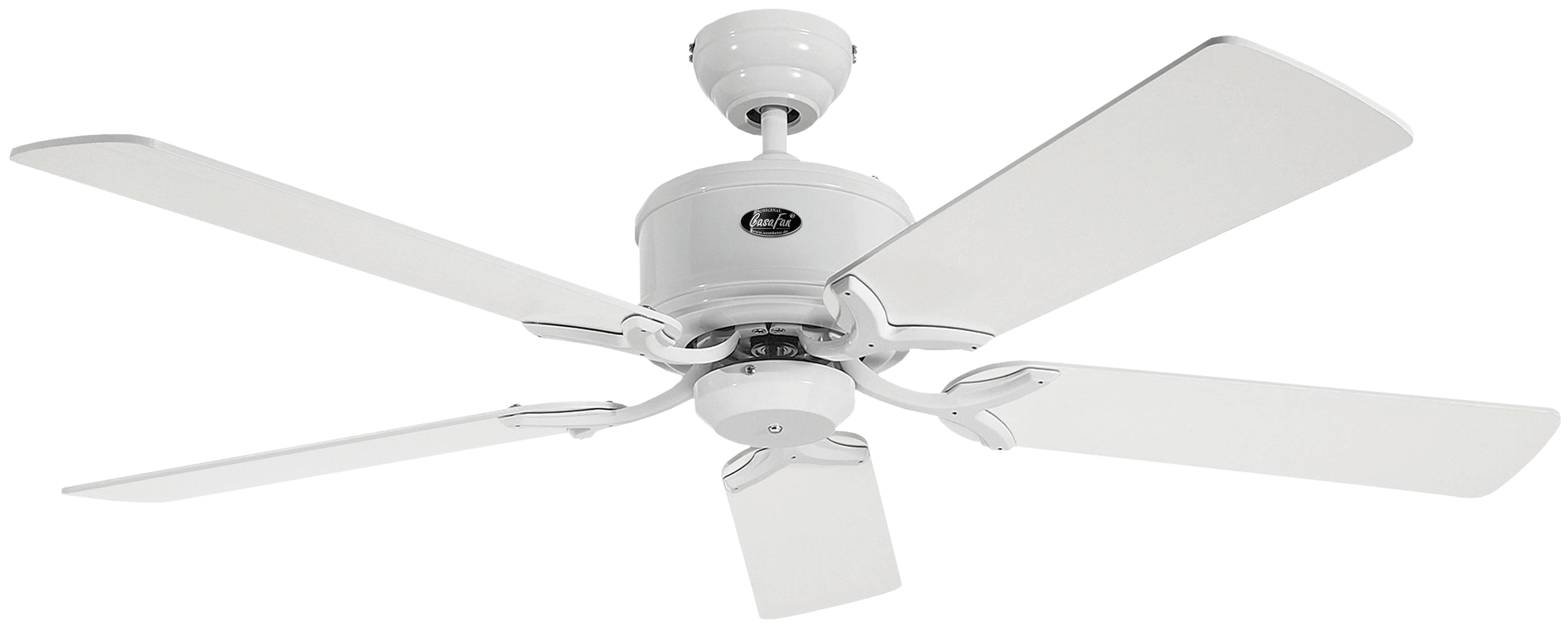 DesignCeiling fan with an elegant, classic design. Housing galvanized and clear-coated (metal finish) or with a two-layer varnish (varnish finish). Five multi-layer reversible wooden blades with a diameter of 132 mm are included, varnished or coated with a decorative finish and sealed to protect against moisture penetration.