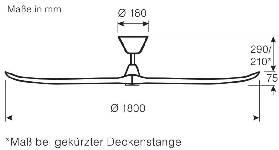 | Spacing ceiling - blades: | 285 mm / 190 mm with shortened downrod |