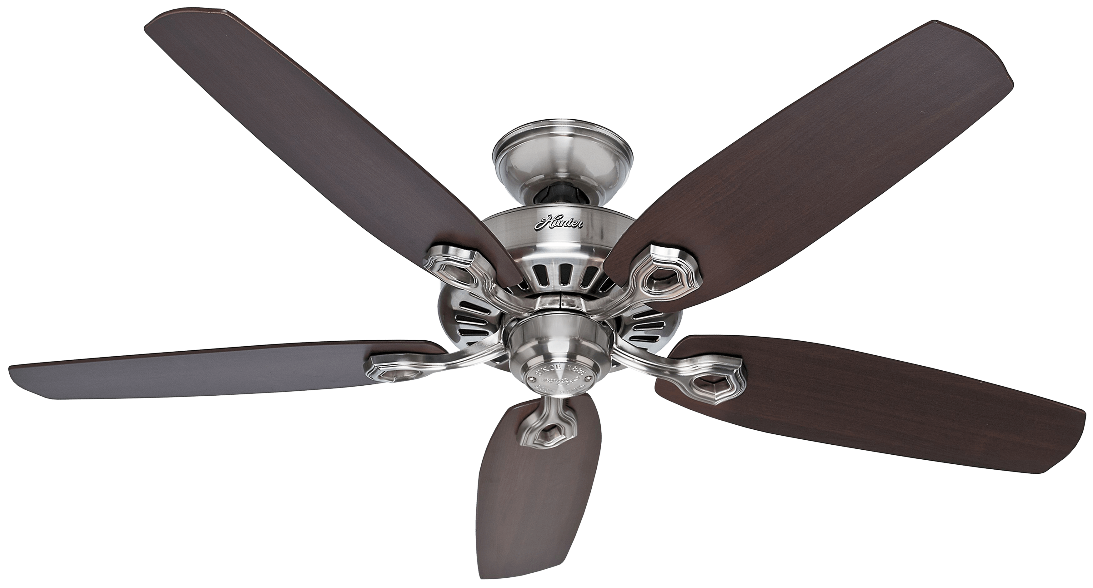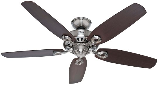 - Hunter ceiling fan BUILDER ELITE 132 NB: New Bronze - Brazilian Cherry/Yellow Walnut, for a rustic or industrial ambiance.