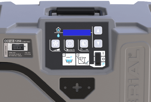 Control | Fully automatic hygrostat control, operating and control panel, operating hours counter, electricity meter (MID), 2-stage fan control, day/night operation, manual pumping out |