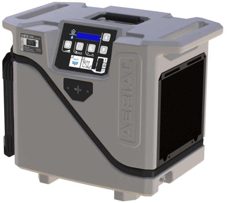 Light, compact and mobile. Built-in condensate pump for autonomous operation and a dehumidification capacity of 18 liters per day. Convenient controls, indicators and a stackable aircube design. The AD 20 dehumidifier from Aerial offers all of this.