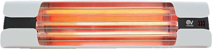 This variant in white matt differs from the main variant, the Infrared heater light 1800 watt gray polished, only in color. Both models are part of the Thermologika Design series by Vortice and offer a high output of 1800 watts, which can be controlled in three stages via a pull switch.