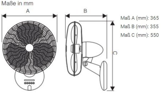 Dimensions of the Gordon W30LG wall fan