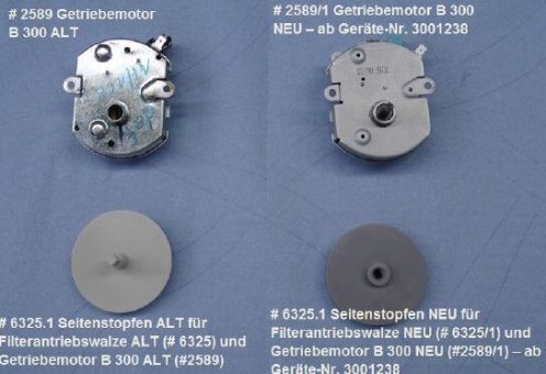 Die Filterantriebswalze B 300, komplett (inkl. beider Seitenstopfen und Distanzhülse). Wird ab Gerätenr.: 3001238 verwendet.
