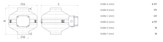 Rohrventilator Ø 150 mm energiesparend – CA 150 ES | 150 mm | 120 Watt | 800 m³/h | 2.250 U/min | 490 Pa | 16203 | 469,99 € Preis inkl. 19 % MwSt. zzgl. Versandkosten |