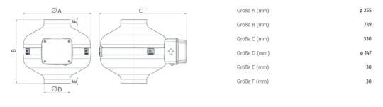 Mit seiner Nennweite von 150 mm lässt sich der Rohrventilator unkompliziert in bestehende Rundrohrsysteme integrieren. Die kompakte Bauform ermöglicht eine platzsparende Installation, sowohl horizontal als auch vertikal.