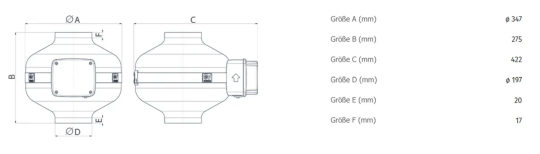 Rohrventilator Ø 200 mm energiesparend – CA 200 ES | 200 mm | 120 Watt | 1140 m³/h | 2.280 U/min | 490 Pa | 16205 | 439,99 € Preis inkl. 19 % MwSt. zzgl. Versandkosten |