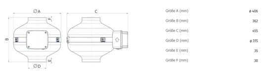 Rohrventilator Ø 315 mm energiesparend – CA 315 ES | 315 mm | 160 Watt | 1600 m³/h | 2.380 U/min | 608 Pa | 16207 | 699,99 € Preis inkl. 19 % MwSt. zzgl. Versandkosten |